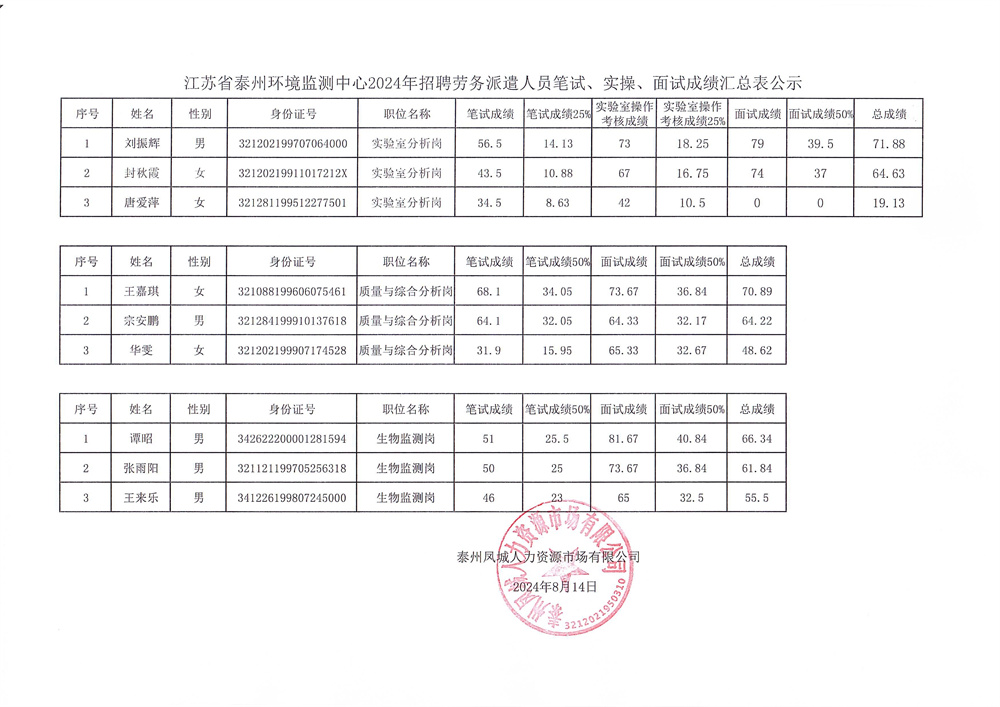 招聘成績(jī)公示
