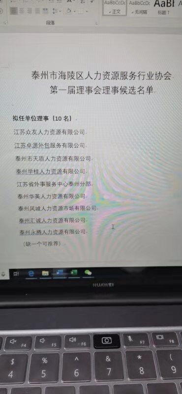 泰州市海陵區(qū)人力資源服務行業(yè)協(xié)會屆理事會理事候選名單