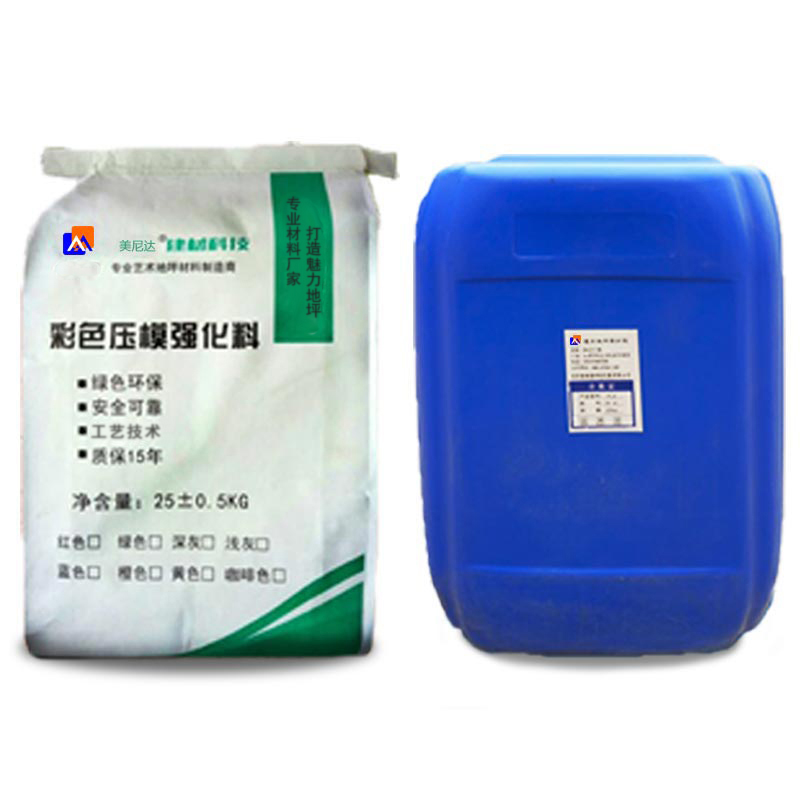 彩色混凝土材料包括:彩色強化料+透明保護劑